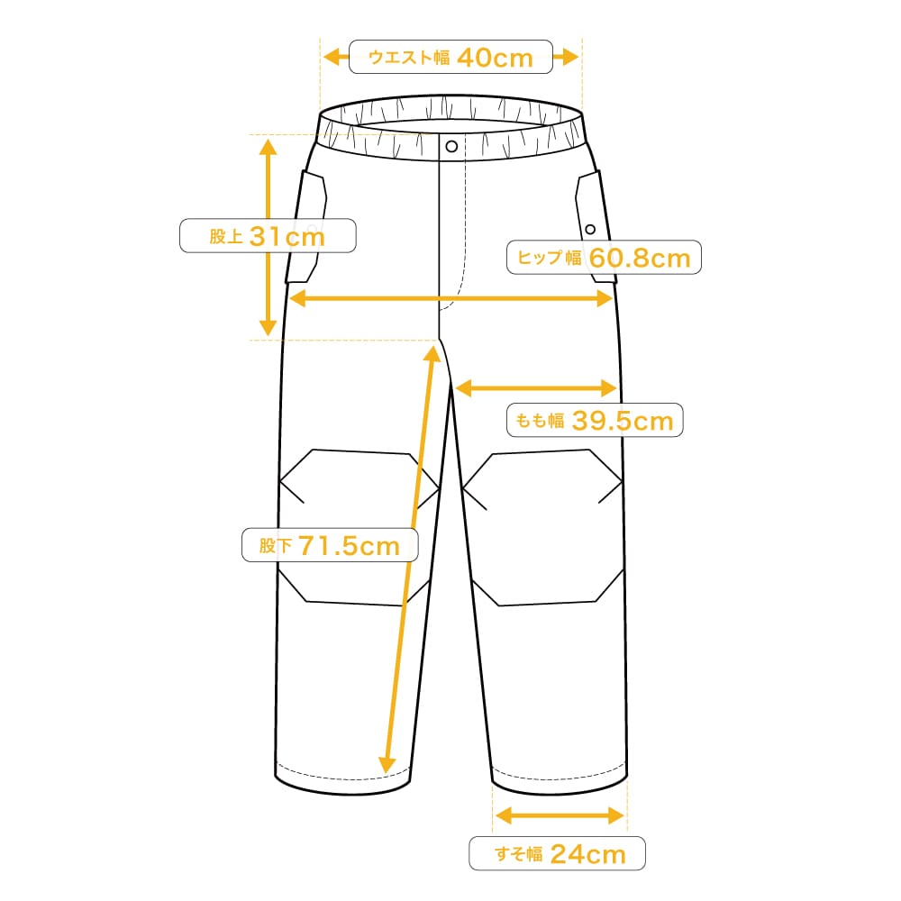 | ウエスト幅 | 股上 | 股下 | ヒップ幅 | もも幅 | すそ幅 | |