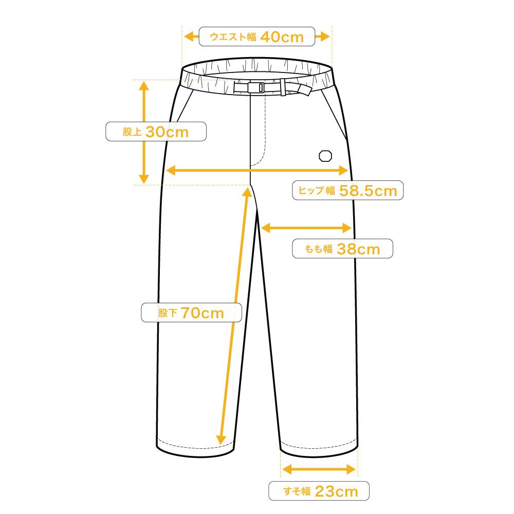 | ウエスト幅 | 股上 | 股下 | ヒップ幅 | もも幅 | すそ幅 | |