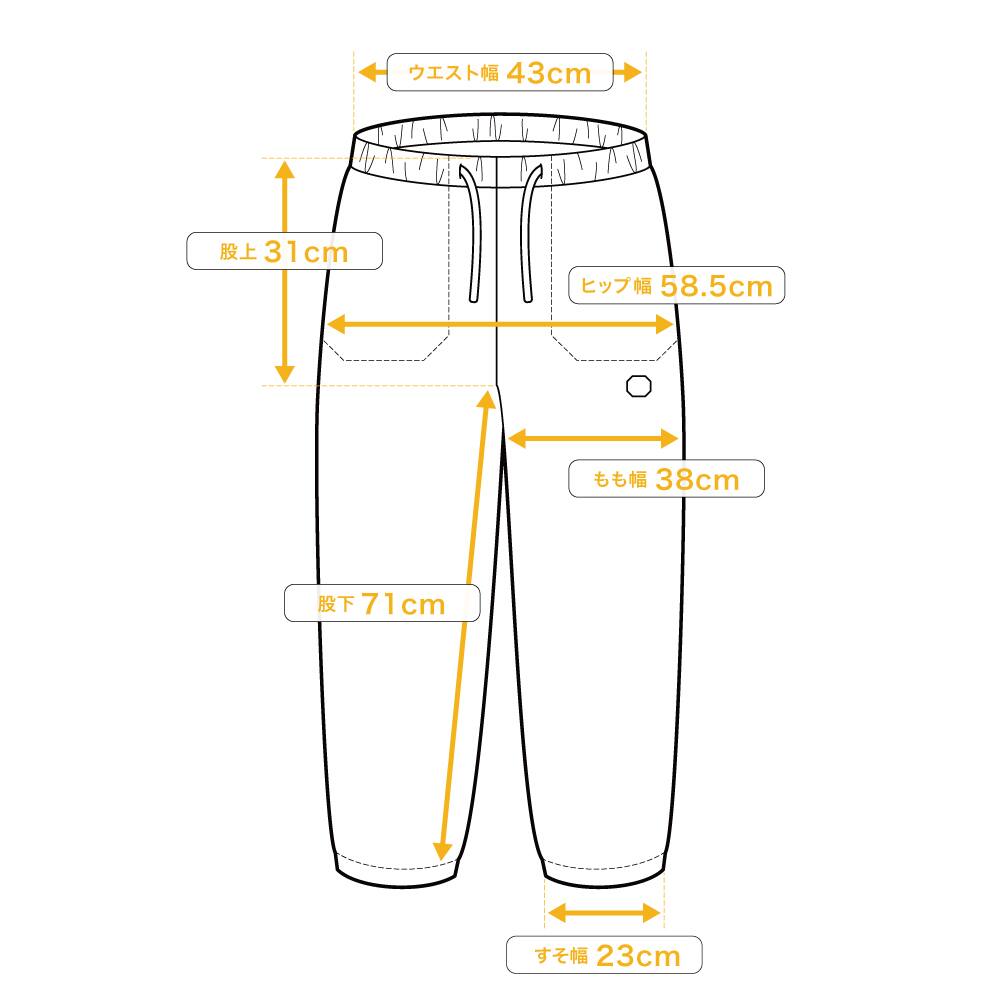 | ウエスト幅 | 股上 | 股下 | ヒップ幅 | もも幅 | すそ幅 | |