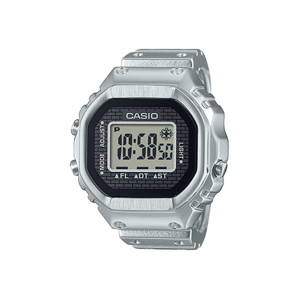 1983年の発売以来、究極の強さを求めて進化を続けるタフネスウオッチG-SHOCK。 初代モデル“DW-5000C”のコンセプトを受け継ぎ、更なる薄型化を果たしたデジタル・アナログコンビネーションモデルGA-2100のベゼルとバンドを金属素材にしたGM-2110Dシリーズです。 均一な八角形成形による金属製ベゼルや高剛性を発揮するガラス繊維入りファインレジン素材のケースを採用。タフな構造とシンプルなデザインはそのままに、11.8mmという薄さを実現しました。メタルバンド仕様でビジネスシーンにも対応できます。 G-SHOCK初代モデルのDNAを受け継ぎながら、デザイン、フォルム、サイズ、さらに耐衝撃性能まで徹底的にこだわったモデルです。