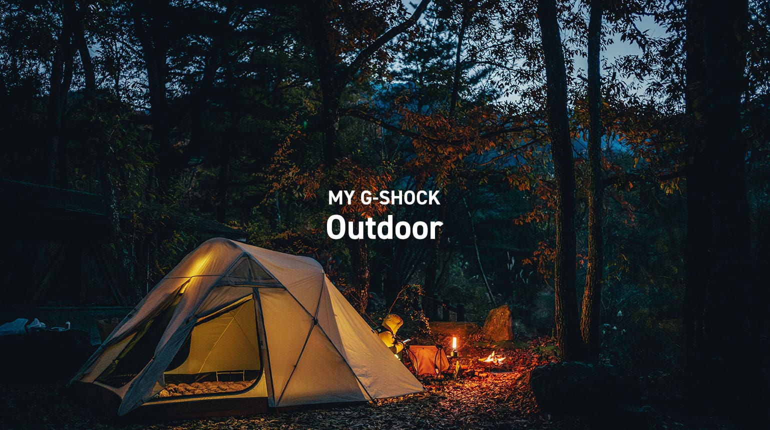 キャンプシーンをイメージしたMY G-SHOCKカラーです。他に、あなたが好きなギアや、好きな山、好きな景色などをテーマにした、あなただけの新しいギア(MY G-SHOCK)をつくることもできます!