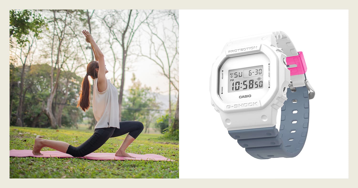 ジム、ヨガなど日頃の運動で使えるMY G-SHOCKカラーです。黒やグレー、ベージュなどシンプルな色に、プラス1つ色を加えたり。これらをベースに、あなたのウェアの色に合わせたり。トレーニングのテンションが上がる、好きなカスタムをしてください!