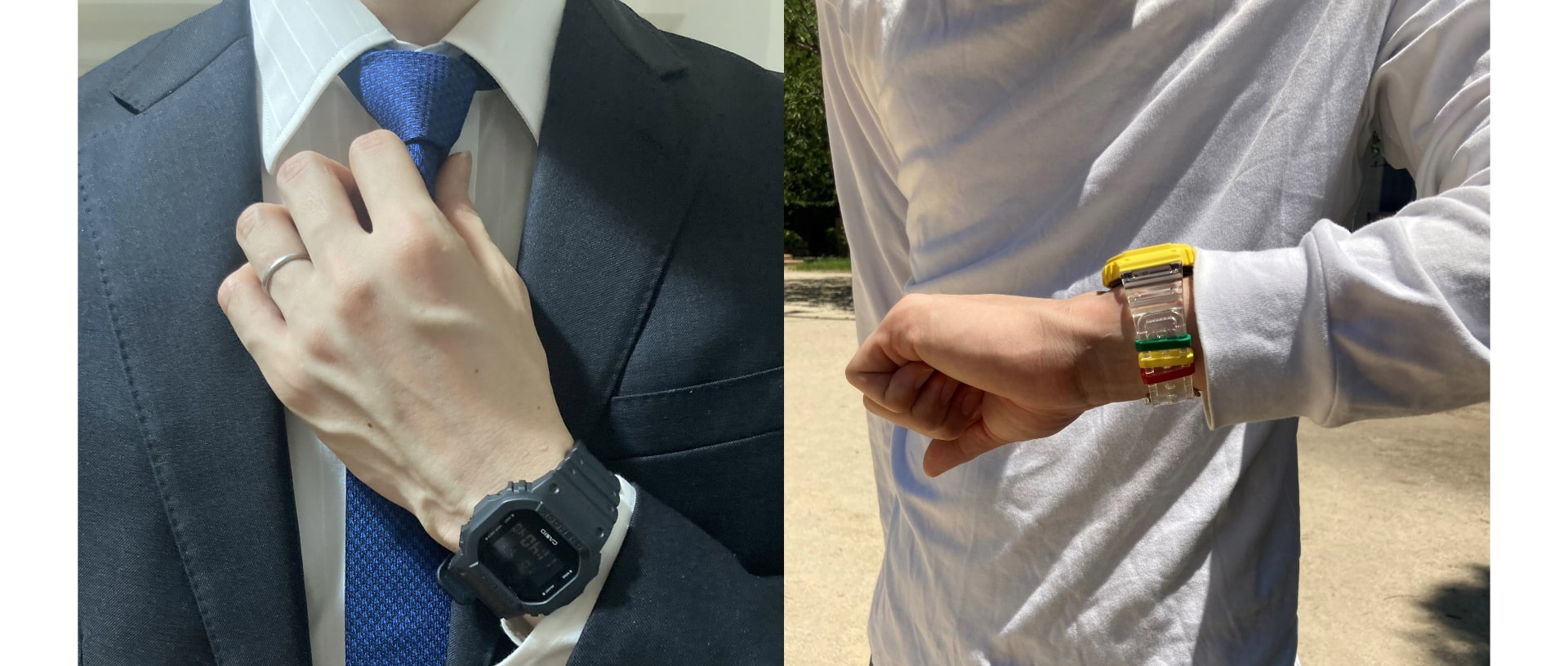 ビジネスシーンであれば、黒や紺を基調とした落ち着いた色使いの時計を、カジュアルにオシャレがしたい気分の時はトレンドカラーを取り入れた時計を作ったり、自由自在にMY G-SHOCKのある生活をお楽しみください。