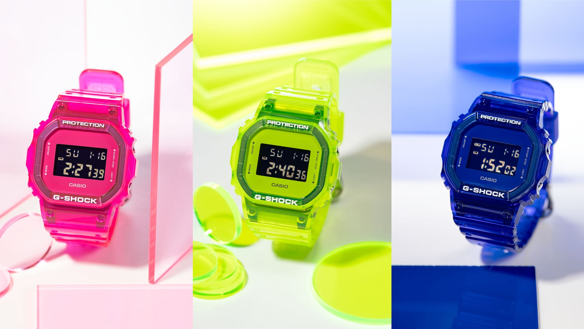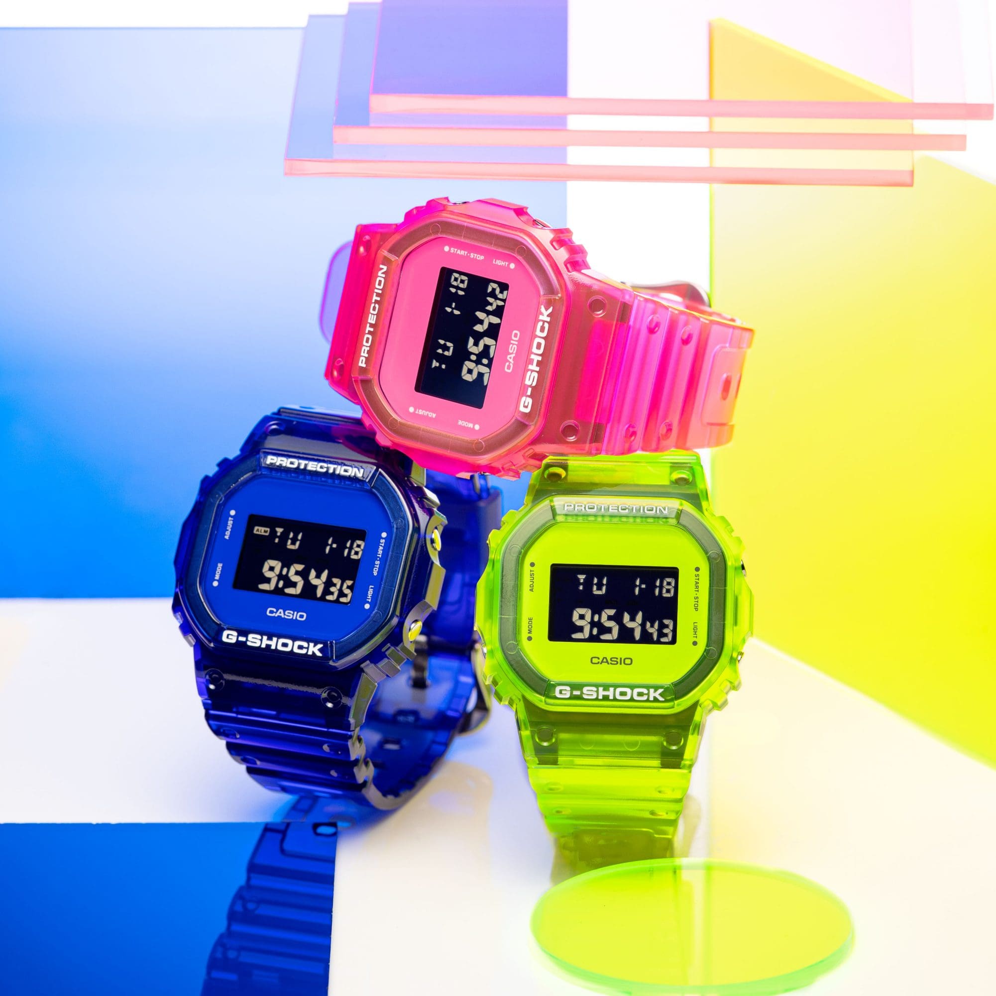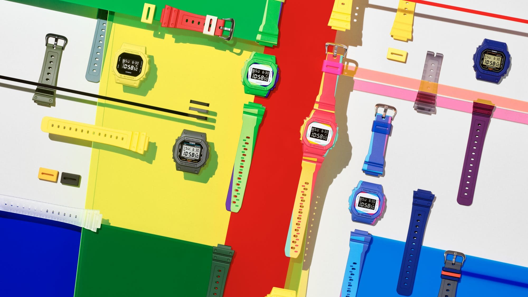 複数の色が詰め込まれたパーツ同士を組み合わせることで、個性的なG-SHOCKを作ることができます。
