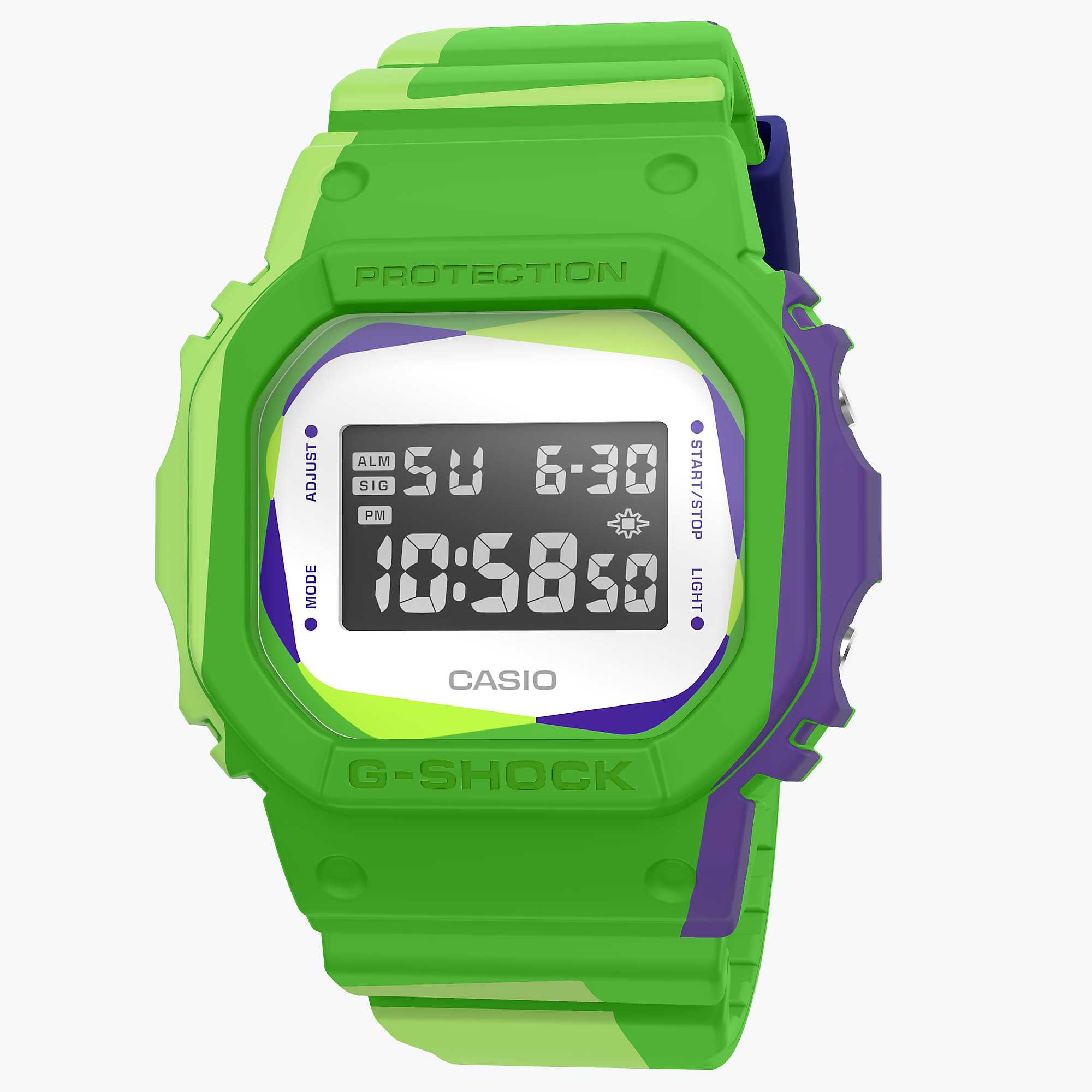 FROGMANの潜水カエルをはじめとするG-SHOCKアイコンキャラクター18体を組み合わせ、カモフラージュ柄にアレンジしました。
