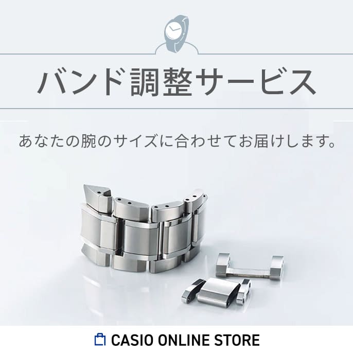 バンド調整サービス 対象商品に限り、希望されるお客様にバンド調節をおこなった上でお届けいたします。