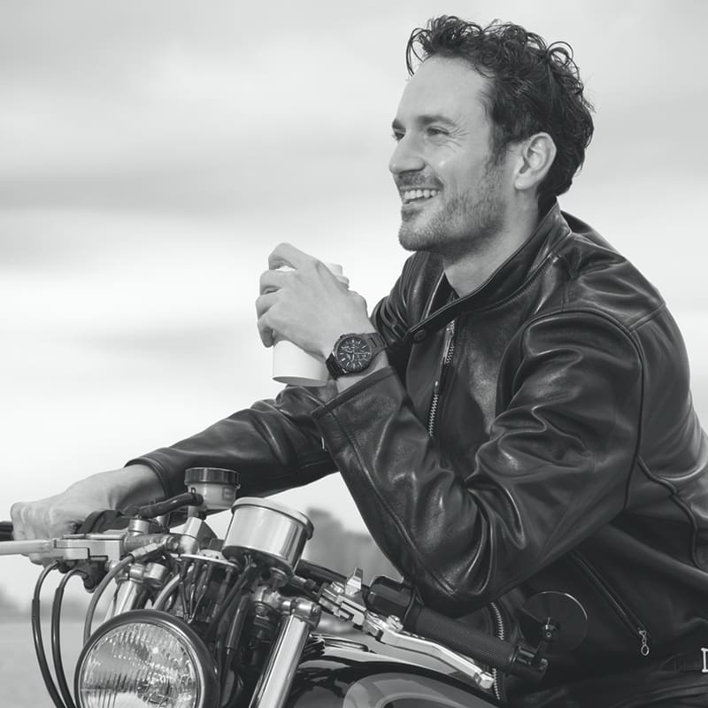 オールブラックの精悍な佇まいソリッドデザインのクロノグラフ