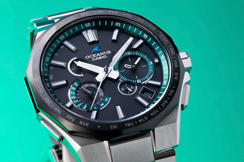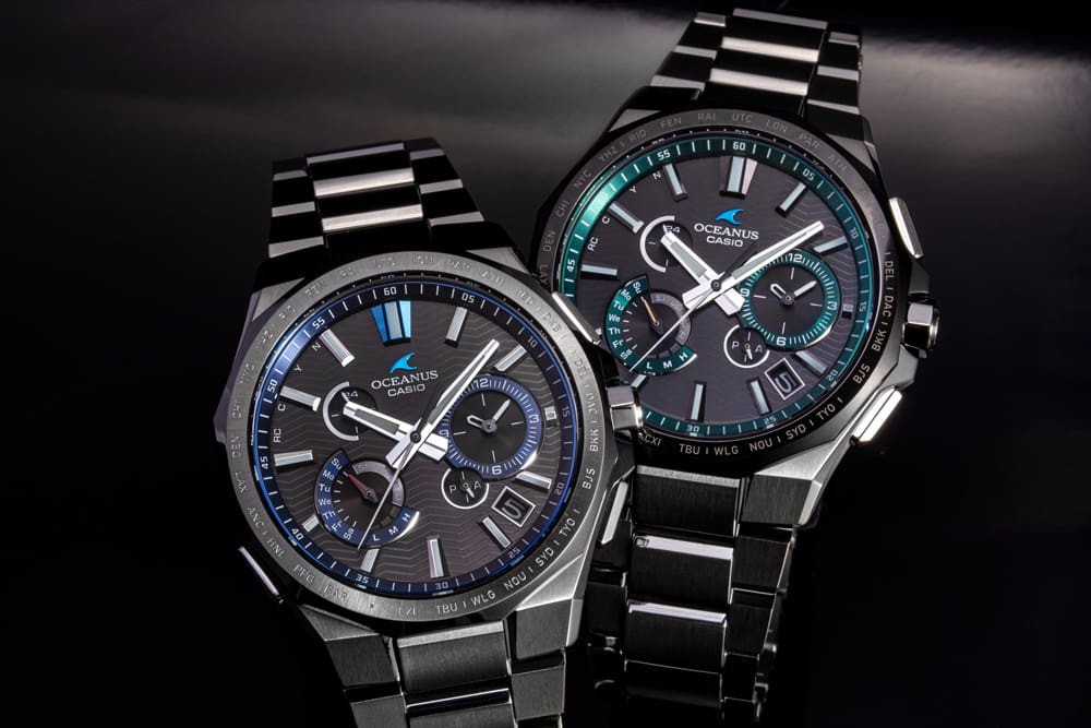 今回発売されるのは、フェイスカラーにOCEANUSブルーを採用した『OCW-T6000-1AJF』と、トレンドとして注目されているグリーンの『OCW-T6000A-1AJF』。ともにアクセントとして、ダイアルリングとサブダイアルリングに配色されている。