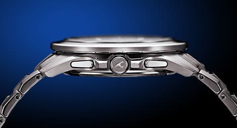 ケース、バンドに加工が難しいとされる純チタン素材を使用。長時間の装着でも疲れない着け心地を追求。