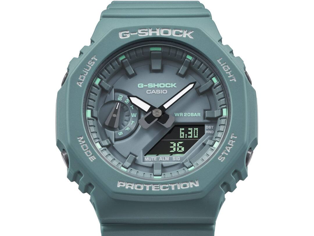 ទទួលបានភាពទាន់សម័យ និងផាសុកភាពជាមួយនាឡិកាដៃឌីជីថល-អាណាឡុក GMA-S2100 ដែលមានរាងស្តើង និងតូចជាងមុន ដែលបង្ហាញពណ៌បៃតងរំលេចបែបទំនើប។ មុខនាឡិកាផ្ទៃរាបស្មើ និងសញ្ញាគ្រឿងសម្គាល់រាងរបារភ្ជាប់មកជាមួយនូវការរចនាប្រកបដោយភាពទាន់សម័យ និងជាទីពេញចិត្ត។ កញ្ចក់នាឡិការាងរង្វង់ដើមមានពណ៌បៃតងដែលកំពុងពេញនិយមក្នុងការទទួលបានភាពលម្អិតដូចជានិមិត្តសញ្ញា គ្រឿងសម្គាល់ និងអេក្រង់ LCD ធ្វើឱ្យនាឡិកាដៃនេះក្លាយជាគ្រឿងបន្ទាប់បន្សំទាន់សម័យតាមដងផ្លូវដ៏ល្អឥតខ្ចោះ។