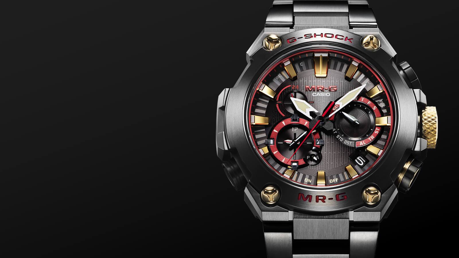 សូមណែនាំនាឡិកាដៃស៊េរី MRG-B2000 ដ៏អស្ចារ្យ ដែលជាមោទនភាពបន្ថែមទៀតដល់ខ្សែស្រឡាយ MR-G ដែលជាស៊េរីនាឡិកាដៃកំពូលរបស់ម៉ាកយីហោ G-SHOCK ។ ការយកចិត្តទុកដាក់យ៉ាងល្អិតល្អន់ចំពោះការផលិត មុខងារ វត្ថុធាតុ និងការចាក់ពុម្ព ដែលជាសញ្ញាសម្គាល់របស់ស៊េរី MR-G ផ្តល់ជូននូវភាពរឹងមាំ និងភាពស្រស់ស្អាតដែលតែងតែជាបេះដូងនៃសិល្បៈហត្ថកម្មជប៉ុន។ ដោយកាត់បន្ថយការនឹកឃើញរូបរាងនៃផ្លិតបត់ជប៉ុន ឬអេក្រង់បត់ ផ្នែកជុំវិញមុខនាឡិកាបង្ហាញពីវាយនភាពដ៏សាមញ្ញ ប៉ុន្តែស្រស់ស្អាត។ ភាពកោងដ៏ទន់ភ្លន់នៃផ្លែដាវដែលឆ្លុះបញ្ចាំងនៅក្នុងគ្រឿងសម្គាល់ជាមួយការចាក់ពុម្ពលម្អិតដែលផ្តល់នូវគែម និងផ្នែកកោងដ៏ស្រស់ស្អាតដែលមានតែបច្ចេកវិទ្យាកែច្នៃណាណូរបស់ Yamagata Casio ប៉ុណ្ណោះដែលអាចផលិតបាន។ ស៊េរី MRG-B2000B-1A4 នាំនាឡិកាដៃនេះទៅកម្រិតបន្ទាប់ជាមួយនឹងការបំផុសគំនិតពីទ័ព Akazonae — ដែលជាពណ៌នៃអាវពាសដែកក្រហមដែលពាក់ដោយសាមូរ៉ៃវរជន ហើយភ្ជាប់មកជាមួយនឹងភាពអង់អាចក្លាហាន។ និមិត្តសញ្ញា G-SHOCK និង MR-G នៅលើខ្សែនាឡិកាបានដាំជាមួយពណ៌ប្រពៃណីនៃភាពក្លាហាន ហើយវាក៏ប្រើសម្រាប់សមាសធាតុមុខនាឡិកាផងដែរ។ នាឡិកាដៃនេះក៏មានស្រទាប់ពណ៌លើម៉ាករបស់ G-SHOCK ជាពណ៌ក្រហម និងខ្មៅ ដើម្បីបង្ហាញពីភាពរឹងមាំតែមួយគត់ និងមិនចេះចប់។ ប៉ុន្តែមុខងារមិនហួសពីរចនាប័ទ្មនៅក្នុងនាឡិកាដៃមួយប្រភេទនេះទេ ដែលមានការក្រិតតាមខ្នាតដែលគ្រប់គ្រងដោយវិទ្យុ និងការផ្គូផ្គងទូរសព្ទឆ្លាតវៃតាមរយៈ Bluetooth® ដើម្បីផ្តល់ភាពរីករាយ ថែមទាំងផ្តល់ភាពងាយស្រួលប្រើបំផុតដល់ម្ចាស់នាឡិកាដៃផងដែរ។ ម៉ូឌុល MR-G ដ៏ពិសេសនេះ ថែមទាំងមានបន្ទះស្រោបពណ៌មាសដើម្បីកាត់បន្ថយភាពធន់នឹងអគ្គិសនីផងដែរ។ ដូចនេះប្រសិនបើលក្ខណៈនេះមិនគ្រប់គ្រាន់ទេ មានការប៉ូលាដោយម៉ាស៊ីន Sallaz ការពង្រឹងទ្វេដង និងគ្រីស្តាល់ត្បូងកណ្តៀងដែលមានការស្រោបប្រឆាំងនឹងការចាំងពន្លឺដែលធានារាល់ភាពលម្អិតនៃនាឡិកាដៃនេះបញ្ចេញនូវអំណាច និងភាពល្អឥតខ្ជោះ។ ឈានឡើងដល់ស៊េរី MR-G ដែលជាតំណាងនៃភាពរឹងមាំ ភាពស្រស់ស្អាត និងភាពជាក់លាក់ ដែលកើតឡើងនៅពេលដែលបច្ចេកវិទ្យាជប៉ុនជួបនឹងសោភ័ណភាពជប៉ុន។