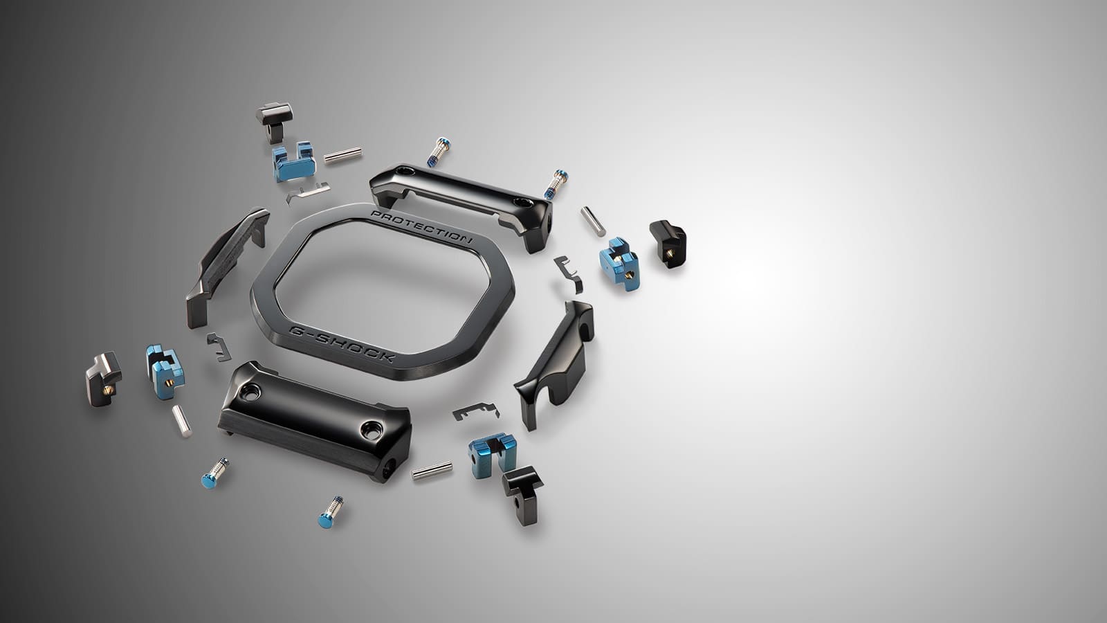 កងមុខផ្នែកខាងលើត្រូវបានផលិតដោយ COBARION ដែលជាសំលោហៈរឹងមាំខ្លាំង ដែលជាមូលដ្ឋានដ៏ល្អសម្រាប់ផ្ទៃកញ្ចក់ដ៏ទំនើប។ វាមានភាពរឹងប្រហែលបួនដងនៃទីតានីញ៉ូមសុទ្ធ និងពន្លឺដ៏ភ្លឺចាំងជាងប្លាទីន។ ខ្សែនាឡិកាប្រើ DAT55G សំលោហៈទីតានីញ៉ូមដែលមានភាពរឹងប្រហែលបីដងនៃទីតានីញ៉ូមសុទ្ធដែលផ្តល់នូវដំណើរការដ៏ល្អឥតខ្ជោះ។ ជាមួយនឹងវត្ថុធាតុដែលមានភាពច្នៃប្រឌិតទាំងនេះដែលបានបង្កើតឡើងនៅប្រទេសជប៉ុន ក្រុមហ៊ុន Casio ទទួលបានការរចនាផ្នែកខាងក្រៅដែលផ្តល់ទាំងភាពរឹងមាំ និងភាពស្រស់ស្អាត។ សំលោហៈទីតានីញ៉ូមពិសេស Ti64 ត្រូវបានប្រើសម្រាប់ប្រអប់ ខ្នងប្រអប់ និងប៊ូតុង។