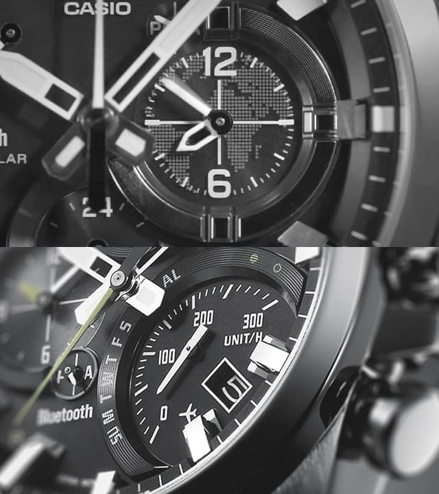 경량 레진으로 제작된 인셋 다이얼 링은 견고한 메탈처럼 보이며 수준 높은 디자인의 메탈 케이스와 밸런스를 이룹니다.