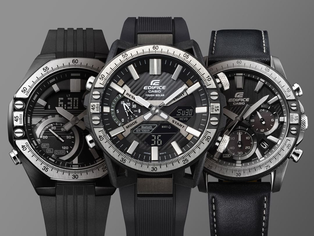 첫 번째는 스마트폰 연결과 Tough Solar 기능을 갖춘 ECB-2000TP입니다. 8각형 베젤의 스마트폰 연결이 가능한 ECB-10TP와, 천연 가죽 밴드를 자랑하는 태양열 충전 EQS-930TL도 제공됩니다.