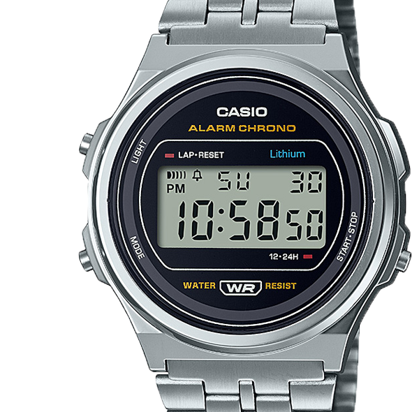 Consienta a su yo interior apasionado por los dispositivos con este elegante reloj unisex directo de la colección Casio Vintage. La línea A100 rinde homenaje al F‐100, el primer reloj Casio diseñado con una carcasa de resina. Mantuvimos el diseño icónico con cuatro botones frontales, pero incluimos componentes metálicos, aún de estilo retro, para crear una versión actualizada de un verdadero clásico. Retro con estilo, pero con funcionalidades contemporáneas; estos relojes cuentan con cronómetro, calendario, resistencia al agua para uso diario y, por supuesto, luz LED a fin de permitir una lectura fácil en cualquier iluminación. Use el broche deslizable para modificar con facilidad el largo de la correa y lograr un ajuste perfecto.