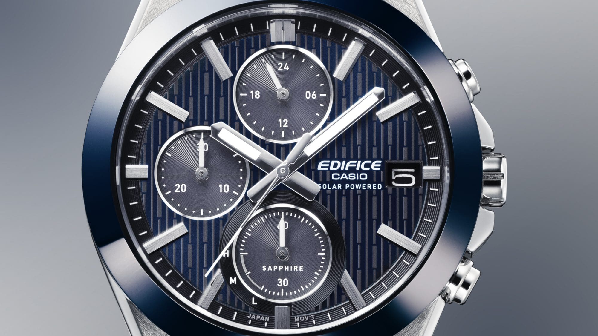 Llamada a todos los entusiastas de los automóviles deportivos de alta gama. Presentamos el primer EDIFICE con bisel de cerámica, con diseño hermoso y fabricado para durar. El bisel de cerámica cuidadosamente pulido, con sus tonos sutiles y refinados, evoca la hermosa textura brillante de un auto deportivo de alta gama y ofrece una resistencia a los rayones aún mayor que el acero inoxidable para lograr una belleza duradera en el tiempo. La carcasa y la correa planas de acero inoxidable cuentan con un pulido meticuloso espejado y fino, y el dial cuenta con un acabado en una sofisticada impresión de patrones, lo que eleva la elegancia del diseño general. La carcasa más pequeña mide 39,5 mm, lo que proporciona estilo y portabilidad. El cristal de zafiro garantiza visibilidad y resistencia a los arañazos. Funcionamiento con energía solar para garantizar una larga duración de la batería, y equipado con cronómetro y resistencia al agua de hasta 100 metros.