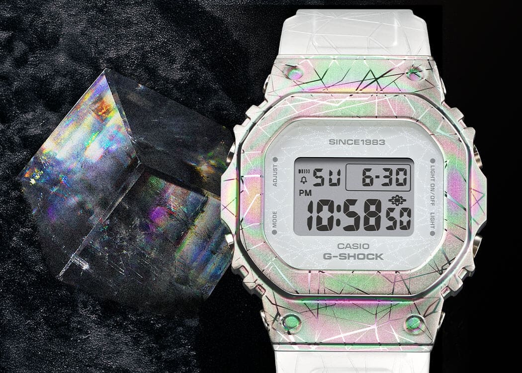 Trace su propio rumbo con un reloj G-SHOCK de edición limitada del 40.º aniversario de Adventurer's Stone. Únase a nosotros para celebrar el 40.º aniversario del G-SHOCK eligiendo uno de estos espectaculares relojes con diseño metálico, inspirados por las piedras que los aventureros han usado para navegar desde la antigüedad. Los colores especiales de los minerales que los antiguos marinos utilizaban para encontrar su rumbo se reproducen en estos diseños de reloj con procesos de forjado, baño de iones y enmascarado, lo que otorga a cada marco metálico un aspecto único. Las correas están fabricadas con resina coloreada o translúcida y tienen una textura única con técnicas de estampado en caliente y moldeado en color de Garal. Estos relojes de edición limitada honran el 40.º aniversario del G-SHOCK de principio a fin: la frase “SINCE 1983” (Desde 1983) aparece en el dial; el logotipo del 40.º aniversario diseñado por Eric Haze está grabado en la parte posterior de la carcasa y hay cuatro estrellas por el 40.º aniversario en el sujetador de la correa.
