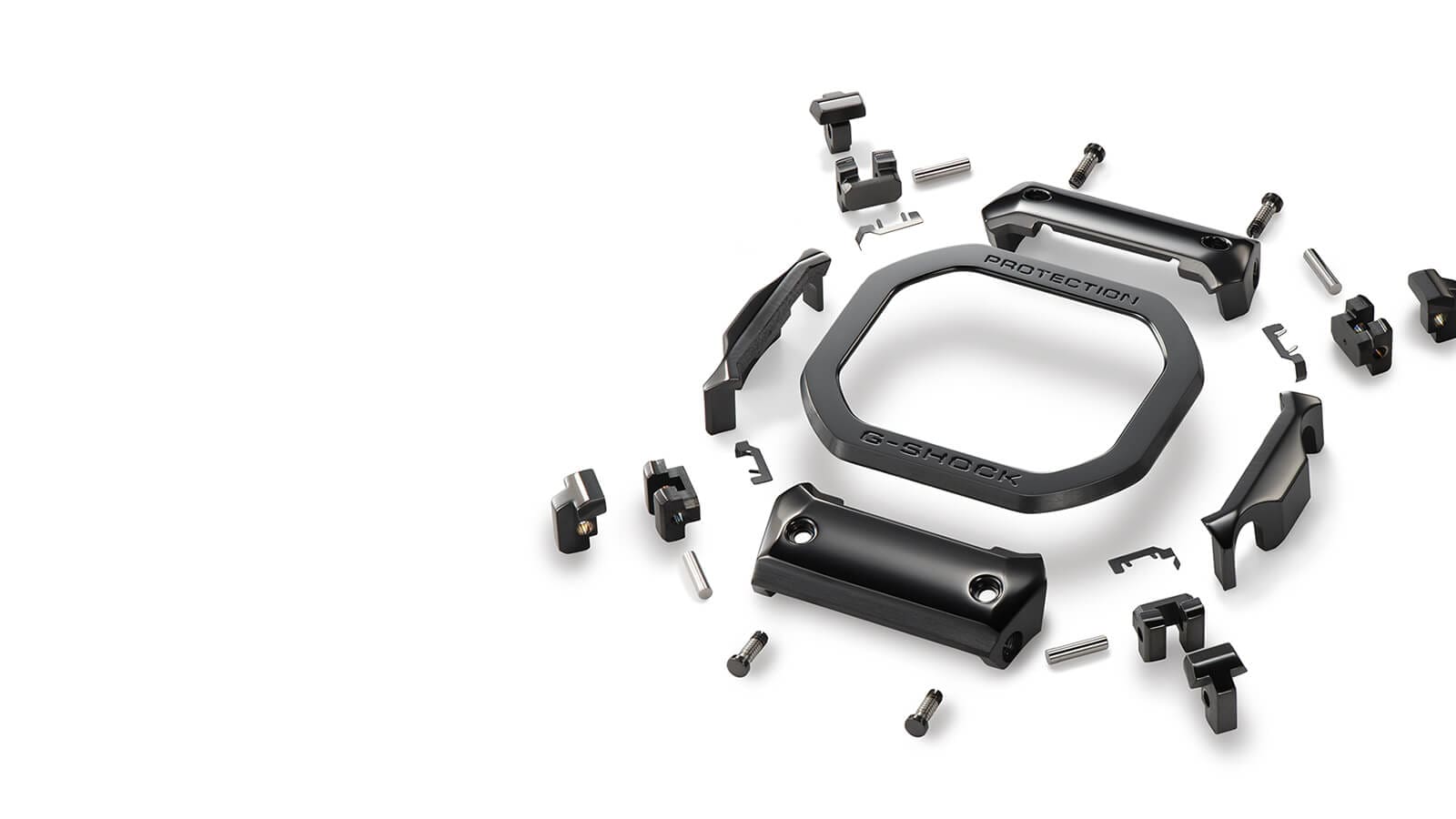 Dé la bienvenida al MRG-B5000, basado en el primer G-SHOCK y fabricado con metales de vanguardia y con acabados meticulosos que son el sello distintivo de la línea insignia MR-G. Estos relojes innovadores son un ejemplo del trabajo en metal. La carcasa y el marco están hechos de una aleación de titanio super dura con base Ti64, mientras que la correa está hecha de otra aleación especial de titanio, DAT55G, que es tres veces más resistente que el titanio puro y altamente trabajable. La parte superior del marco se fabricó con COBARION®, una aleación de cromo cobalto cuatro veces más dura que el titanio puro. Solo el marco consta de 25 componentes diferentes, cada uno pulido de forma individual para obtener una textura sorprendente y detallada. La estructura de protección múltiple de última generación incorpora resortes planos y amortiguadores de silicona al marco de múltiples componentes, lo que garantiza una excelente absorción de impactos para proteger el módulo MR-G dedicado con placa de retención bañada en oro. El MRG-B5000B tiene su lustre pulido y revestimiento de carbono similar al diamante como el mismo negro brillante que el primer G-SHOCK en que se basa, pero con un acabado de espejo lustroso. La esfera del reloj cuenta con un icónico patrón de ladrillo y una línea roja en referencia al diseño original. Estas bellezas metálicas también cumplen cuando se trata de funciones, con calibración controlada por radio y emparejamiento de smartphone mediante Bluetooth®.