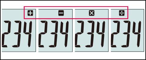 يشير الرمز (+،-،×،÷) على الشاشة إلى حالة العملية التي تقوم بإجرائها حاليًا.