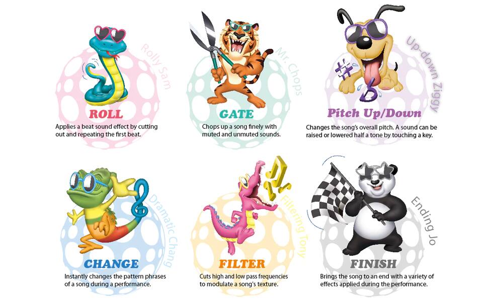 يضفي الضغط على المفاتيح السوداء المُشار إليها حيويةً إلى الموسيقى بفضل ستة تأثيرات صوتية مذهلة!