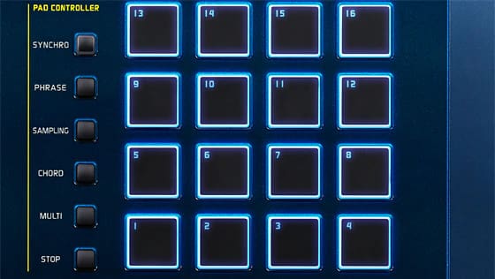 تم تضمين 16 لوحة تعمل باللمس* ومزوّدة بضوء LED أزرق للحصول على أبعاد جديدة للأداء.