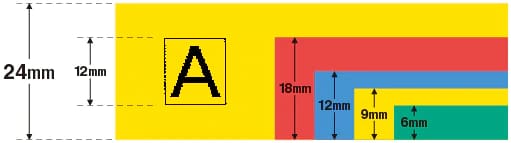 استيعاب أشرطة بعرض 24مم و18مم و12مم و9مم و6مم.