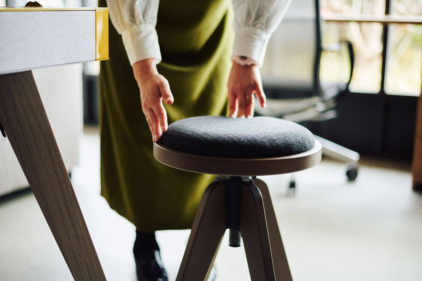 Since pianos are often found in people's homes and the stool is used at various times, it can be easy for them to accumulate dirt and stains. To address this, special fabrics that are easy to clean were chosen for the seat covering, among many other careful considerations to improve the user experience. In addition, the height of the seat can be finely adjusted by rotating the seat part of the stool. Anna notes that being able to make subtle adjustments to the height of the seat is an important point for piano players, as it allows them to customize the stool to their body size and personal preferences.