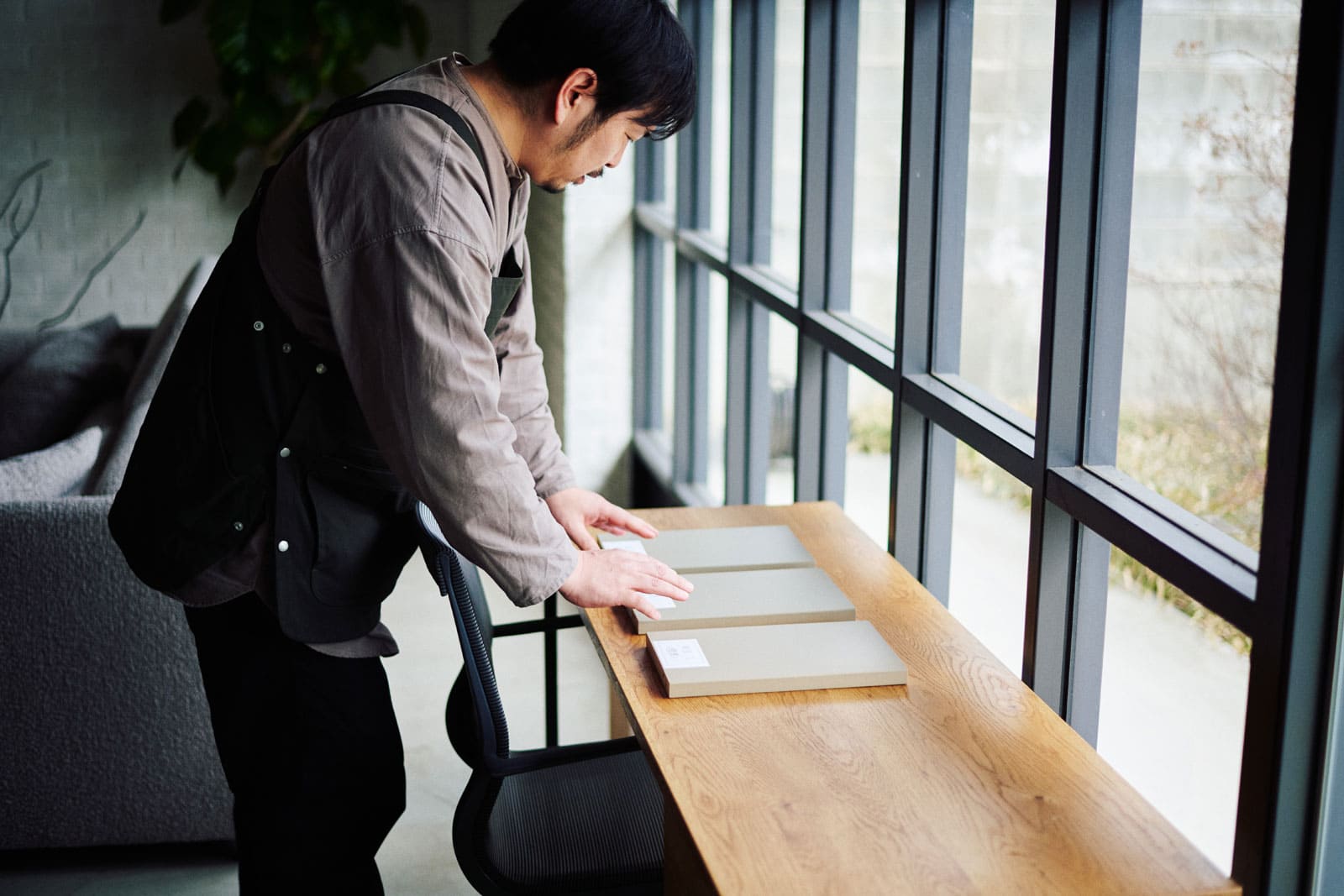 To reproduce the wood grain, they first painted the beech wood with a brown color to create the wood grain pattern, then painted over it with light gray. Matching the color of the already finished "PX-S7000" was a difficult task, especially when it came to matching other materials with the color. It was more difficult to match the light color than the dark color. When finishing off with a dark color, it blends in relatively well, but when trying to make it brighter, the more paint you apply, the more the wood grain disappears. It took time, but they were able to achieve a good color scheme where the wood grain is still visible and the color is just right. The color may appear different depending on whether it is viewed in indoor or outdoor lighting, so they made fine adjustments to the paint, carefully comparing the results under different types of lighting until we fully satisfied with the final result.