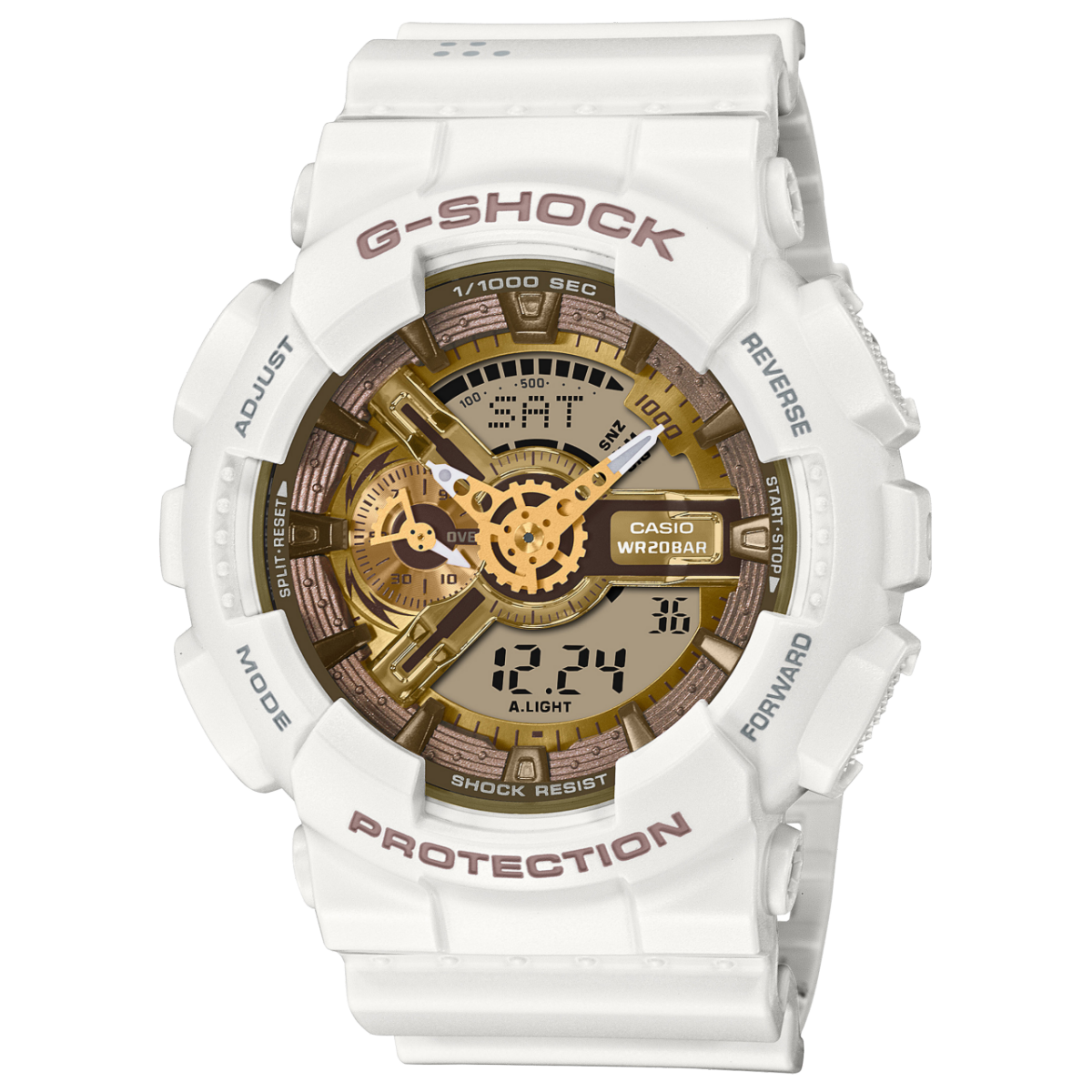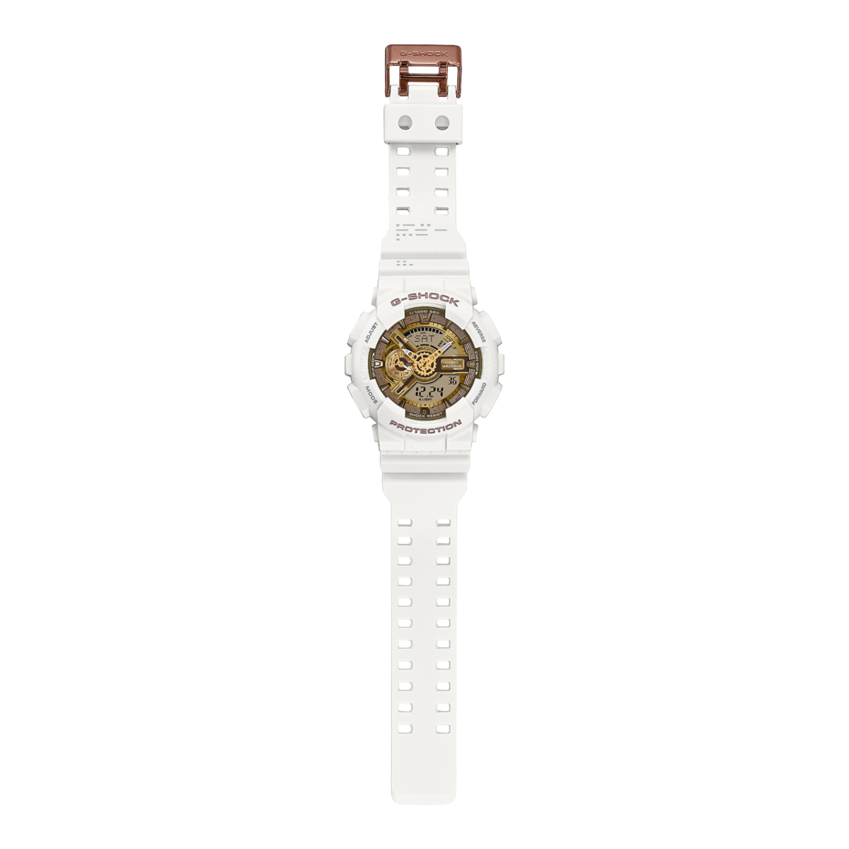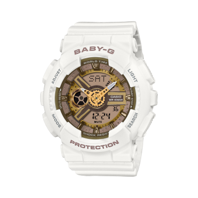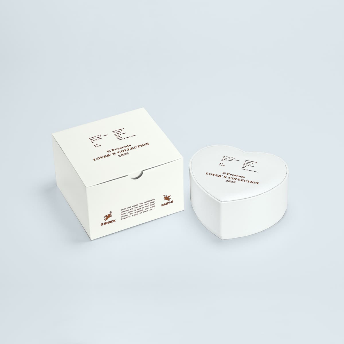 Telegraph your love to that someone special — a matching set of watches with a coded message of affection. This unique take on the classic oversized GA-110 and its smaller mate, BA-110, starts with a pure white base. The Morse code design on the G-SHOCK band spells out Love is, while the design on the BABY-G band spells out Gravity. Place the two side by side to complete the message: a special communiqué for just the two of you that speaks to the powerful invisible forces between two people in love. The case back is engraved with 2022 and an image of an angel and devil, symbolizing the attraction of opposites. Packaged in a special two-watch box in white, these timepieces make an unforgettable gift.