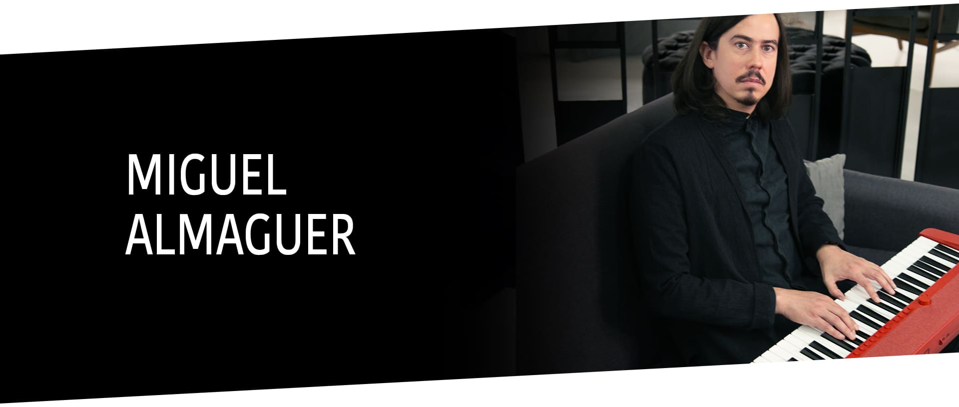 Miguel Almaguer es compositor, director, productor e Interprete. Ha trabajado intensamente componiendo para el medio cinematográfico por los últimos 18 años habiendo compuesto para alrededor de 40 producciones. Cuenta además con numerosas obras de concierto, sinfónicas, para ensambles de cámara y para solistas. Ha dirigido a más de 200 orquestas y ensambles en 43 países en los 5 continentes. Fue director musical de la agrupación Il Divo del 2018 al 2021 y del show solista de Carlos Marín desde el 2016 hasta su fallecimiento en el 2021. Actualmente sigue componiendo para cine de manera habitual, aunque vuelca principalmente su creatividad en el ensamble de música de cámara: JAM ensamble sonoro, donde compone, dirige, y ejecuta al mismo tiempo piano y teclados. Es también creador del cómic: Malva, para el cual escribe historia, música y canciones.