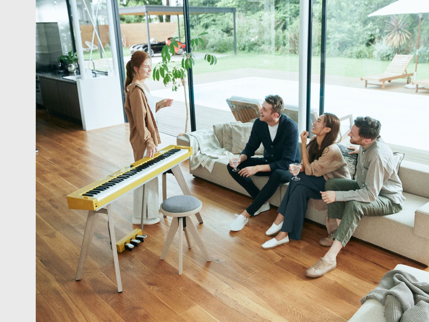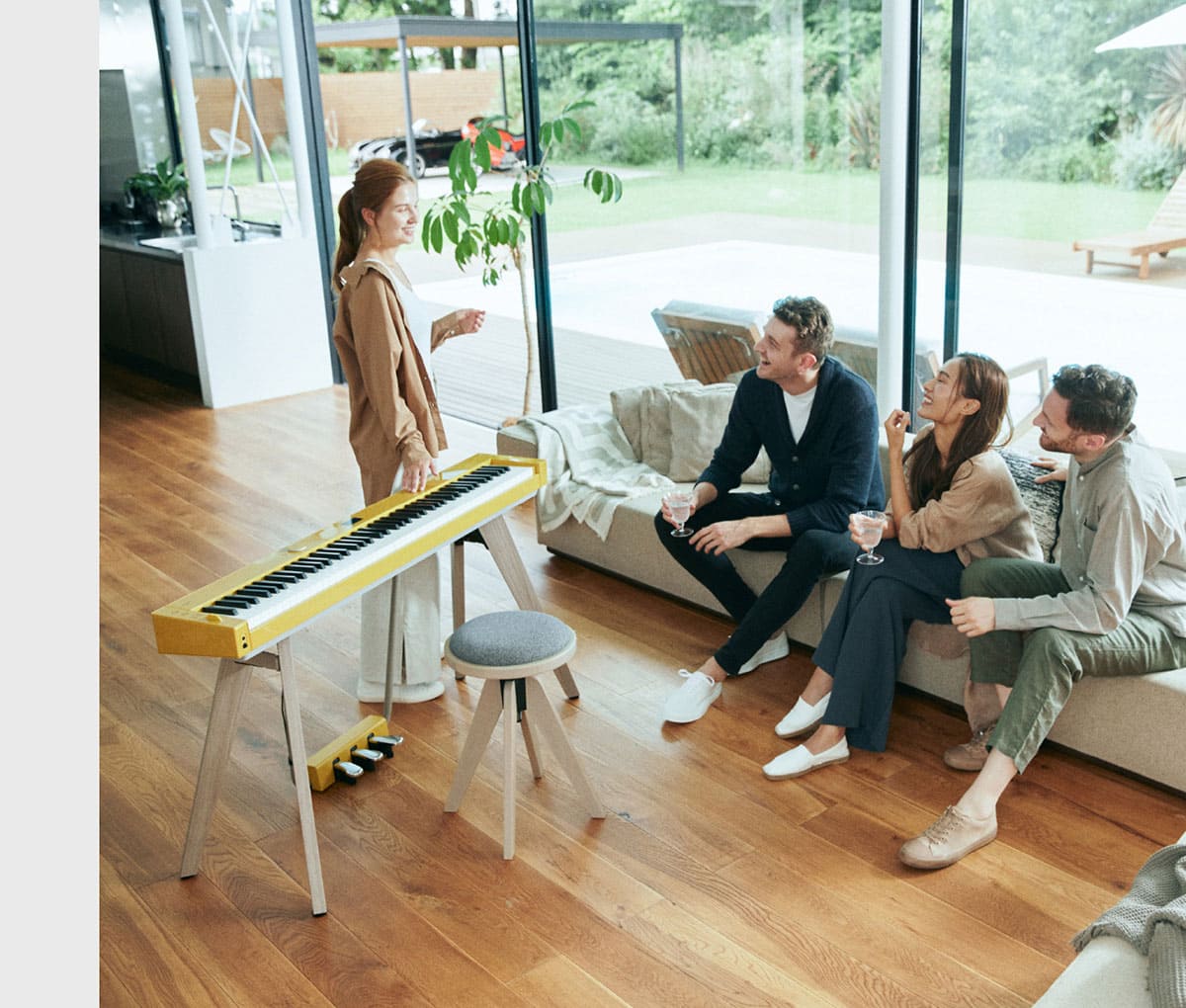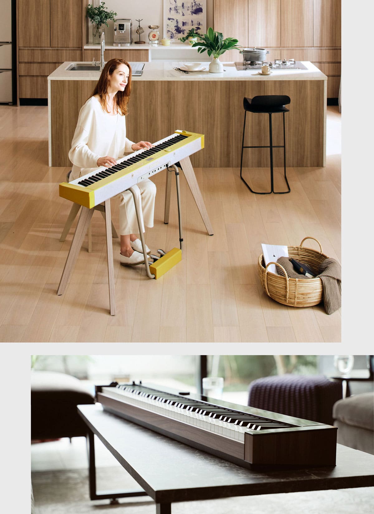 Las variaciones de color de los PX-S7000 y PX-S6000 se seleccionaron meticulosamente para que los pianos armonicen con cualquier entorno. El PX-S7000 viene en negro clásico, blanco y “mostaza armoniosa”, que es un tono suave de amarillo inspirado en los estilos de diseño interior europeos y que combina de forma magistral para brindar una sensación de singularidad. Este color cordial está diseñado para armonizarlo de forma perfecta con muchos entornos diferentes y agrega brillo a cualquier espacio como artículo del diseño interior. Mientras tanto, el modelo PX-S6000 negro brillante tiene secciones con patrones de madera que le dan un aspecto natural y le permite mezclarse con una amplia variedad de habitaciones. Desde la mostaza armoniosa del PX-S7000 hasta el modelo en negro bicolor del PX-S6000, puede elegir el diseño que mejor se adapte a usted y a su estilo.