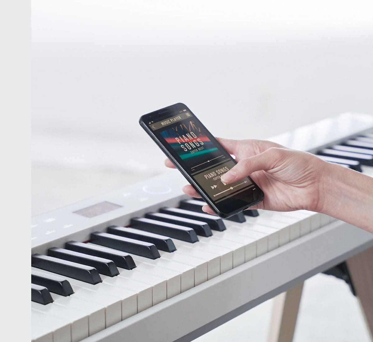 Instale la aplicación móvil gratuita CASIO MUSIC SPACE en su teléfono inteligente o tableta para desbloquear varias funciones emocionantes. Controle el tono, la respuesta táctil, la resonancia, el metrónomo y muchos más parámetros con una sola mano utilizando su dispositivo como controlador remoto. La aplicación móvil también le permite monitorear y ajustar varias funciones a la vez, de manera que pueda personalizar su experiencia de interpretación con facilidad.