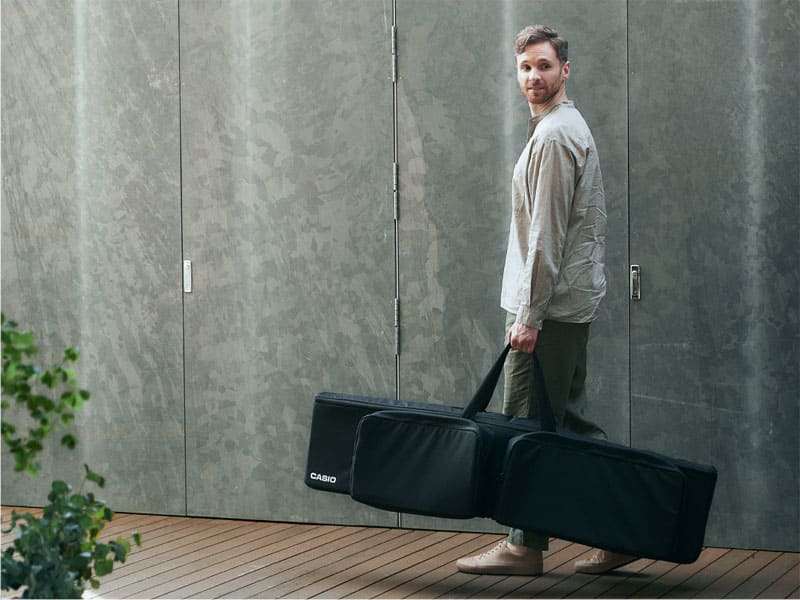 Puede almacenar el PX-S6000 en su estuche de transporte opcional (SC-900P; se vende por separado) y disfrutar de la música cuando y donde quiera. El PX-S7000 también se puede colocar en su estuche desconectando sus pedales y atril incorporados. Ya sea su sala de estar o la casa de su amigo, puede llevar el PX-S7000 o el PX-S6000 a la ubicación que desee. Exprésese con un sonido de primera calidad, donde sea que lo desee.