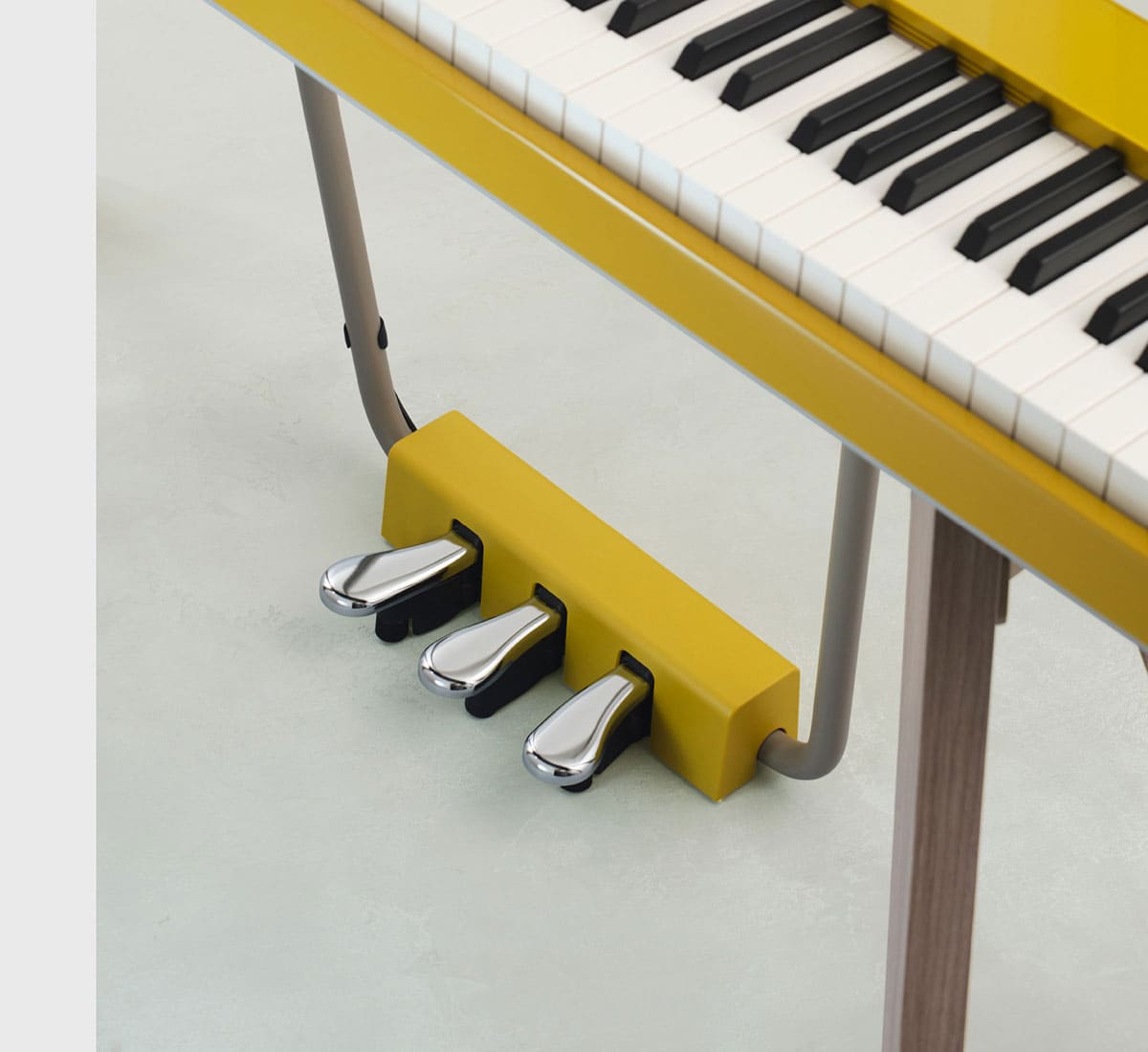 Los pedales incorporados del PX-S7000, basados en el diseño del piano de cola de concierto, se mejoraron considerablemente. Los pedales tienen un mayor intervalo con longitud aumentada y peso optimizado para brindar un mayor recorrido, lo que ofrece más estabilidad y comodidad al intérprete. También se instalan con dos ajustadores y bisagras de pedal reforzadas para permitir incluso controles y ajustes más complejos.