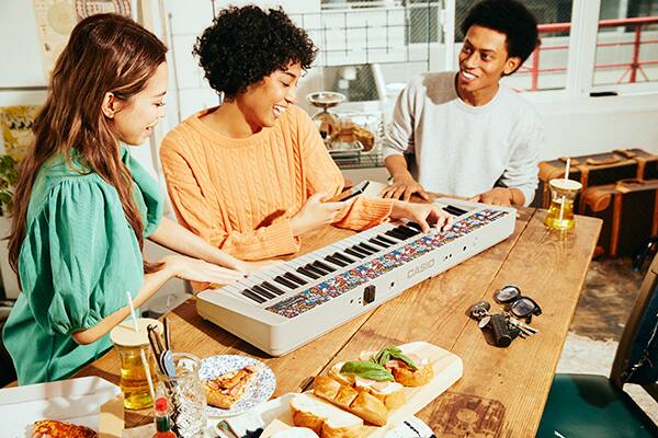 Las huellas que son pioneras en su futuro. Hemos analizado el sonido y la estructura de los instrumentos clásicos utilizados en las canciones exitosas desde el pasado hasta el presente, y les hemos dado vida utilizando nuestra tecnología única. Ahora puede contar con la banda completa. Incluso hemos incluido los TONOS CLÁSICOS de CASIO, para que lo antiguo vuelva a ser nuevo. Hemos recopilado los sonidos icónicos de nuestro rico linaje de teclados y sintetizadores, como el Casiotone 201 para celebrar el debut de nuestros instrumentos musicales electrónicos en los años 80.