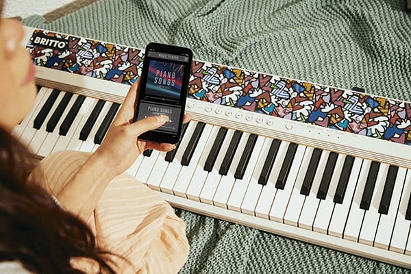 Este es un teclado cuyos colores brillantes llamarán su atención; querrá tenerlo y tocarlo. Comparta la experiencia con amigos y familiares para crear un espacio musical positivo y alegre. El material gráfico especialmente diseñado por Romero Britto expresa amor, esperanza y felicidad. Es divertido tenerlo cerca y estar a su alrededor, pero es aún más divertido sostenerlo y tocar.