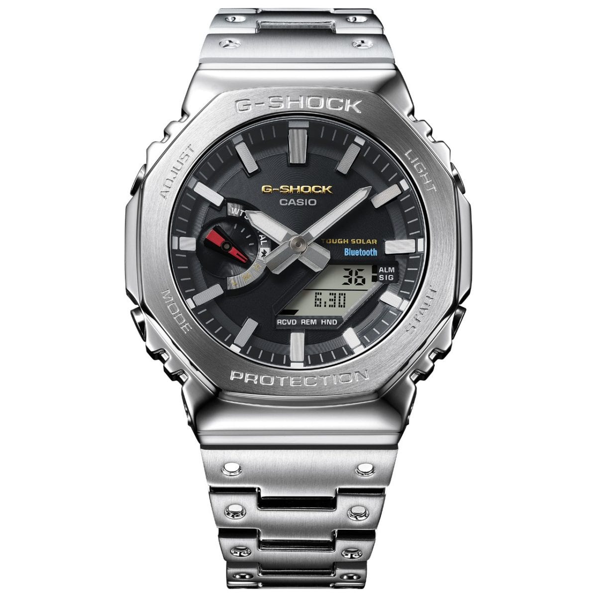 El reloj GM-B2100SD, inspirado en la carátula octogonal del GA-2100, traduce la experiencia urbana en acero pulido. Conserva la silueta original que dio identidad a toda una generación, respetando sus detalles visuales más icónicos. El color, fiel al ADN de G-SHOCK, adquiere aquí una nueva dimensión: sigue siendo reconocible, pero ahora respira elegancia industrial.