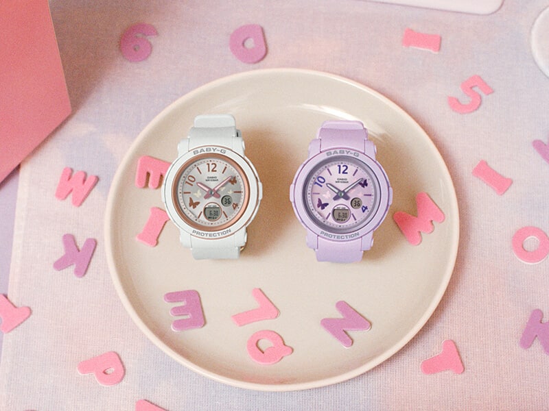 El dial incorpora detalles metálicos de mariposa. Un diseño delgado y compacto para complementar perfectamente la moda kawaii.