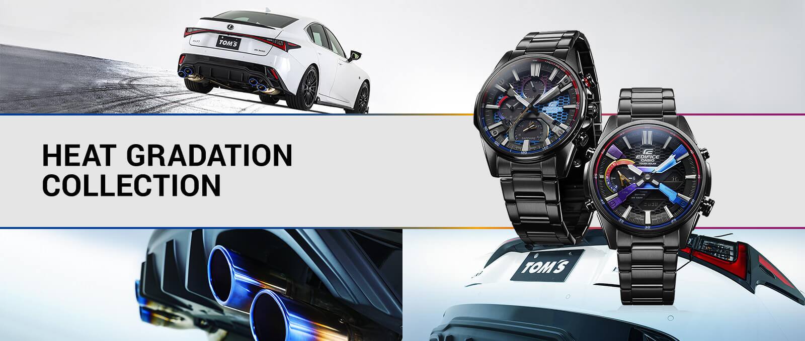 Un diseño mecánico de la esfera acentuado por la gradación de colores que evoca el espectro de la temperatura,