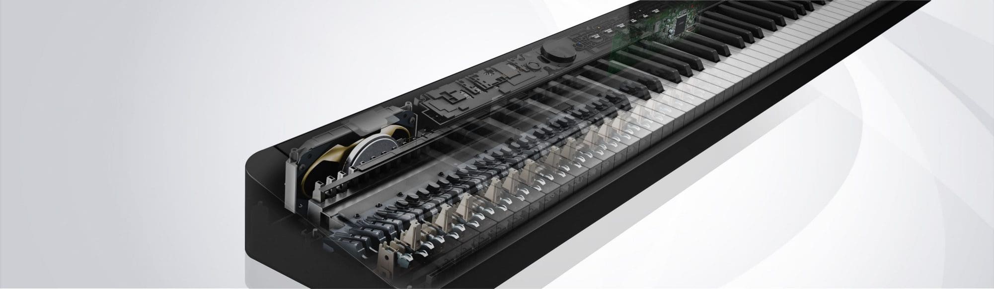 The reduced size of the action mechanism has allowed Casio to create the world's lowest profile digital piano. The hammers and other components essential for the creation of sound have been reduced in size to the absolute minimum to achieve a slim body that maintains a natural piano touch.