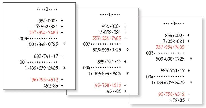 Met een druk op de toets REPRINT worden de bewerking en de berekeningsresultaten opnieuw afgedrukt. - Controleren en corrigeren