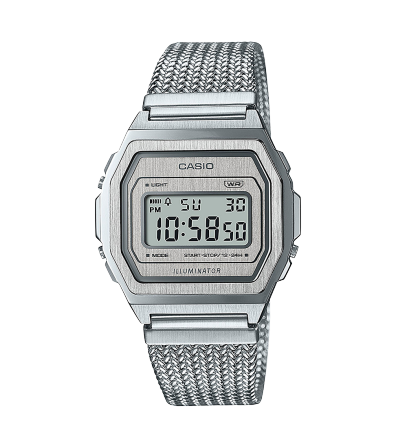 Hoewel een horlogeband natuurlijk met name bedoeld is om te zorgen dat het horloge goed om de pols zit, kun je ook door dit detail een persoonlijke en unieke stijl uitdragen. Voor de ROUND Vintage-modellen van CASIO worden verschillende armbandstijlen gebruikt om het karakter van het Vintage-horloge te benadrukken: bijvoorbeeld met de fijn geweven milanaisestijl, zilverkleurige geschakelde banden of een horlogeband in Jubilee-stijl, met geborsteld stalen oppervlak en stevig gecoat volgens het zogenoemde "ion plating"-proces voor verhoogde krasbestendigheid. Wat denk je bijvoorbeeld van de A171-WEMG-9A?