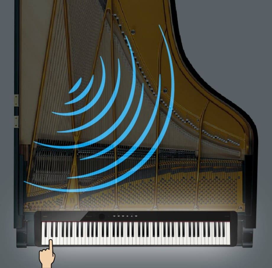 The harmonically rich sound of an acoustic grand piano is produced by a combination of the complex mechanism within the instrument's large body and the changes in overtone structure from the approximately 230 strings that resonate according to the player’s articulation, musical phrasing and use of the pedals. Casio's proprietary Multi-Dimensional Morphing AiR Sound Source produces the natural, full-bodied sound of a grand piano with incredible detail.