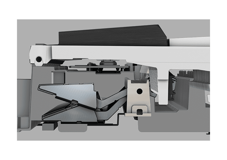 The reduced size of the action mechanism has allowed Casio to create the world's lowest profile digital piano. The hammers and other components essential for the creation of sound have been reduced in size to the absolute minimum to achieve a slim body that maintains a natural piano touch.