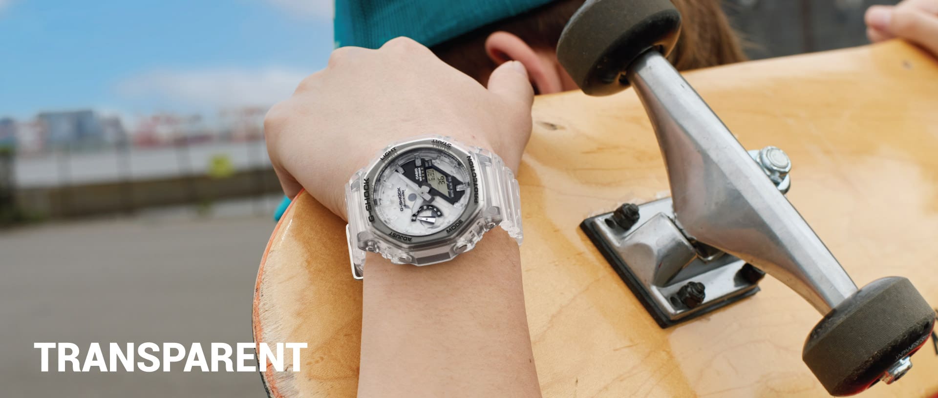 G-SHOCK’s most popular silhouettes are tapped to create the Transparent Collection. These new timepieces are created by utilizing striking semi-transparent resin bezels and bands.