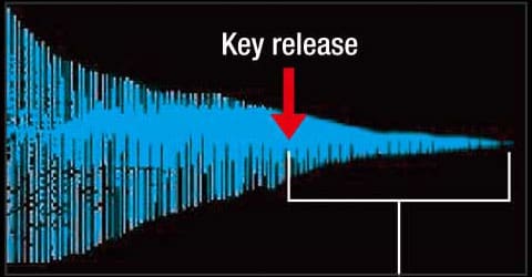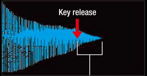 A duração do som produzido por um piano de cauda varia dependendo da velocidade com que os dedos são retirados das teclas após a batida. O Simulador de teclas soltas gera a duração do som residual seguindo um princípio semelhante, permitindo expressar nuances delicadas no staccato e no legato.