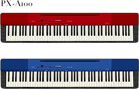O PX-A100 foi concebido para celebrar o 10.º aniversário e regressou ao conceito de criação da Privia de um piano "incomparável" adornado com cores metalizadas em vermelho e azul.
