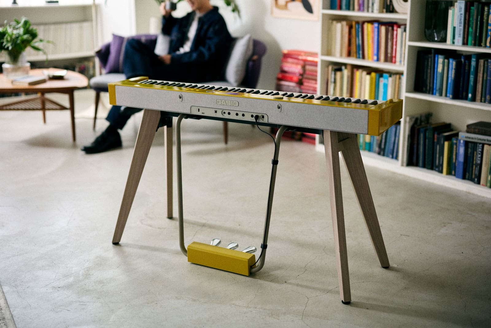 Enquanto toca o Privia PX-S7000, Stamp sorri e diz: "Parece que tem um piano de cauda dentro dele".