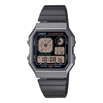 Os adjetivos que melhor caracterizam os relógios Vintage EDGY são independente e marcante. À primeira vista, muitos modelos parecem apenas funcionais, mas o look EDGY característico consegue estabelecer um equilíbrio entre funcionalidade e subtilezas de design sofisticadas. Um exemplo disso mesmo é o A100WEGG-1A com o seu mostrador dividido em secções para a função de hora universal e o impressionante mapa dos continentes, as funções de cronómetro e alarme, o calendário automático e o indicador de 4 fusos horários. Alguns impressionantes modelos CASIO VINTAGE COLLECTION destacam-se particularmente graças à calculadora integrada. Estas características não só tornam este relógio vintage numa peça excecional, como transformam até os visuais mais simples em looks repletos de estilo.