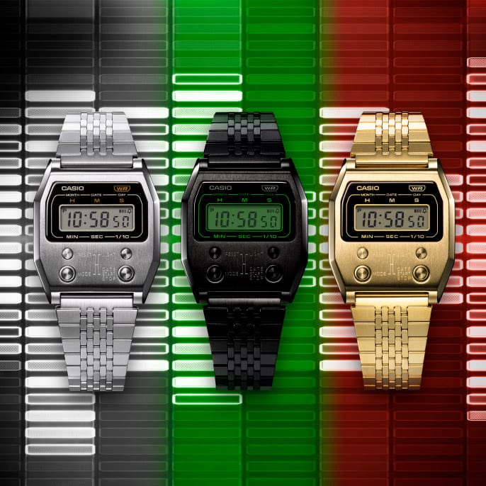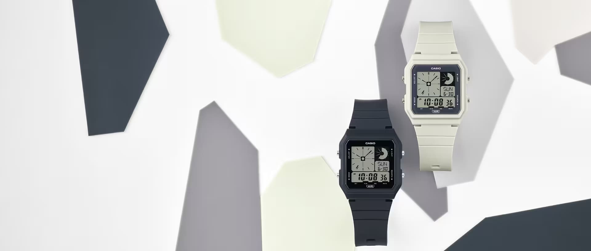 These watches boast an LCD with both an analog-style clock and digital time, along with graphics that work in tandem with the watch’s various features. The band perfectly complement the compact case and is made with eco-friendly bio-based resins. The smaller size and range of natural colors looks good with any body type and any outfit.
